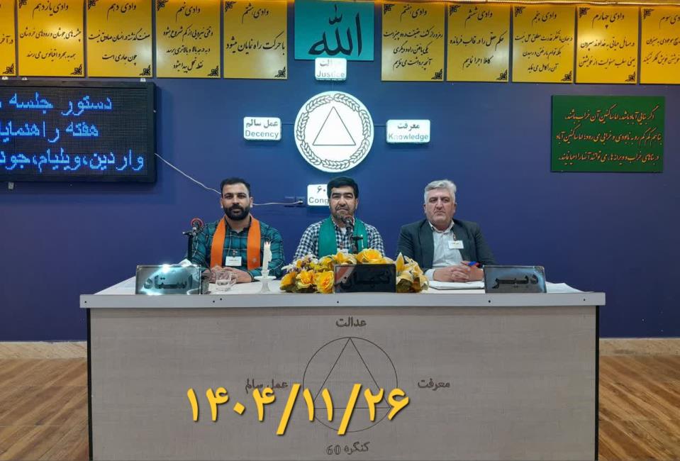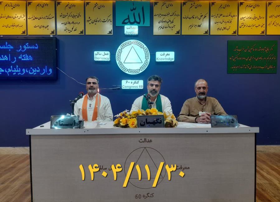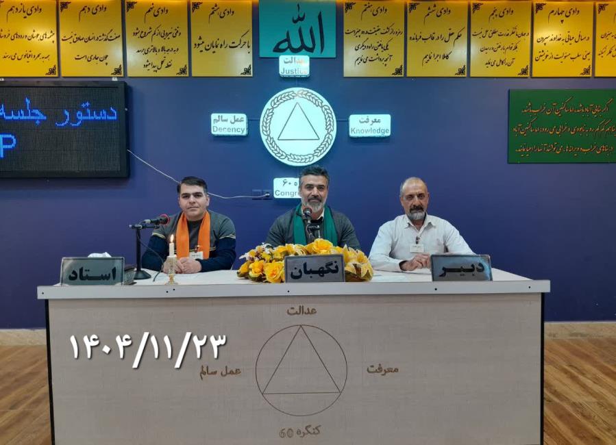 کارگاه های آموزشی کنگره 60 راهنما شخصی است که با سلاح عشق و محبت راه را نشان میدهد 26 بهمن انسان برای اینکه بتواند انتخاب کند دو راهنما دارد یک راهنمای درون که عقل انسان است و یک راهنمای بیرون که میتواند پیامبران یا معلم و راهنما باشد.
