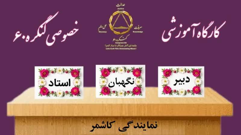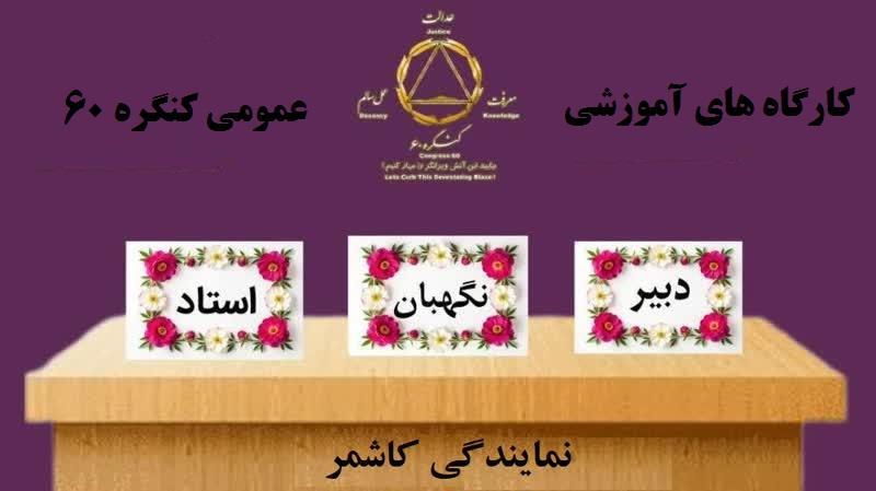 کارگاه های آموزشی کنگره 60 انتقال پیام درمان بزرگترین کمک به کنگره است 17 دي مهم ترین کمک، درست سفرکردن و الگو بودن در جامعه است یعنی با رفتار درست نشان دهم که کنگره ۶۰ جای مقدسی است.
