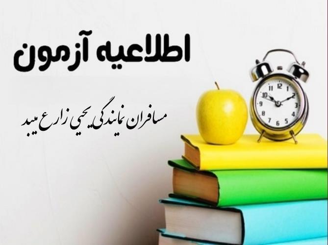 اخبار داخلی آزمون داخلی مسافران 9 دي آزمون حضوری شماره ۱۲ روز سهشنبه مورخ ۹ دی ماه ۱۴۰۴ راس ساعت ۲۰ در نمایندگی یحیی زارع میبد برگزار میگردد.