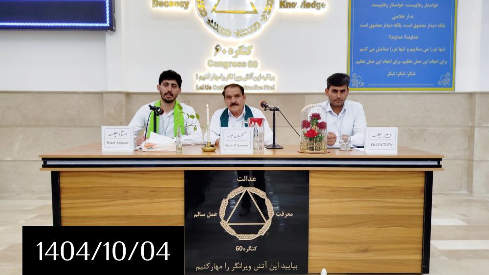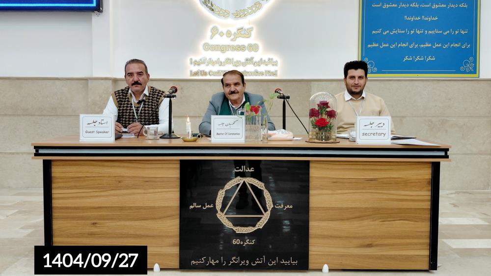 دستور جلسات هفتگي در مورد دستور جلسه شما را رجوع می دهم به کتاب 60 درجه بین صفحات 60تا63 که آقای مهندس می گویند 7 دي همسفرم یک خواب دیدند که باهم سوار یک ماشین قرمز شده بودیم و یک مسیر صعب العبور در میان کوهستان پیش روی ما بود و در آنجا همسفر ...