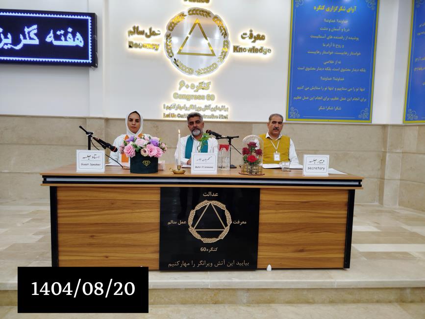 دستور جلسات هفتگي کنگره ۶۰ پلی است میان دوزخ و فردوس 13 آبان امواج قدرت مطلق در تفکر رها یافتگان و آفریده شدگان جان دوباره خواهد دمید تا از سکون به حرکت و از حرکت به پرواز و از پرواز به ...