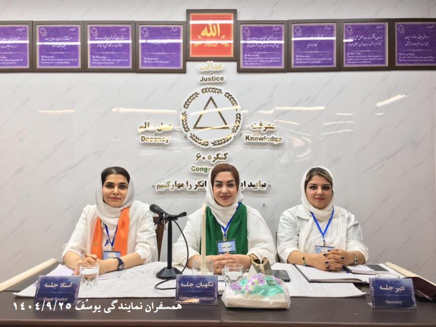 کارگاه های آموزشی کنگره 60 بنیان کنگره پیامآور صلح و سلامتی 19 آذر اسیستانت ویلیام همسفر مینا در مورد دستور جلسه بیان کرد: هر کدام از ما باید یک بنیان و با عملکردمان پیامرسان این روش باشیم.