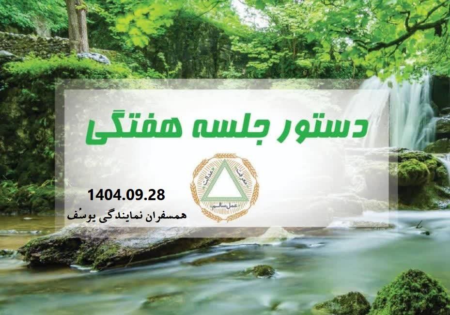 دستور جلسات هفتگي موظف هستم قدردان زحمات خدمتگزاران کنگره باشم 24 آذر همسفر سیمین رهجوی راهنما همسفر الهام درباره دستور جلسه نوشت: من به عنوان یک رهجو و همسفر، وظیفه دارم، آموختههای خود را عملی نمایم.