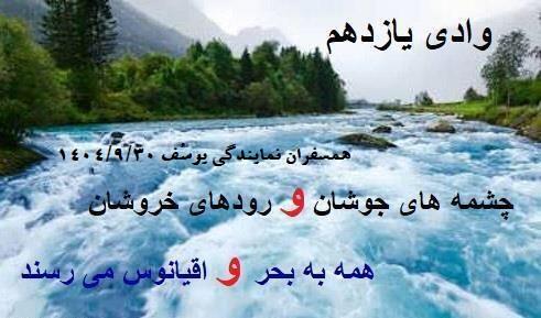 دستور جلسات هفتگي رود خروشان نماد تداوم و شکستن موانع 30 آذر همسفر زهره رهجوی راهنما همسفر زهرا درباره دستور جلسه نوشت: وادی یازدهم، یک رویکرد درمانی و آموزشی برای خروج از تاریکی، رهایی از اعتیاد و رشد شخصیتی است.