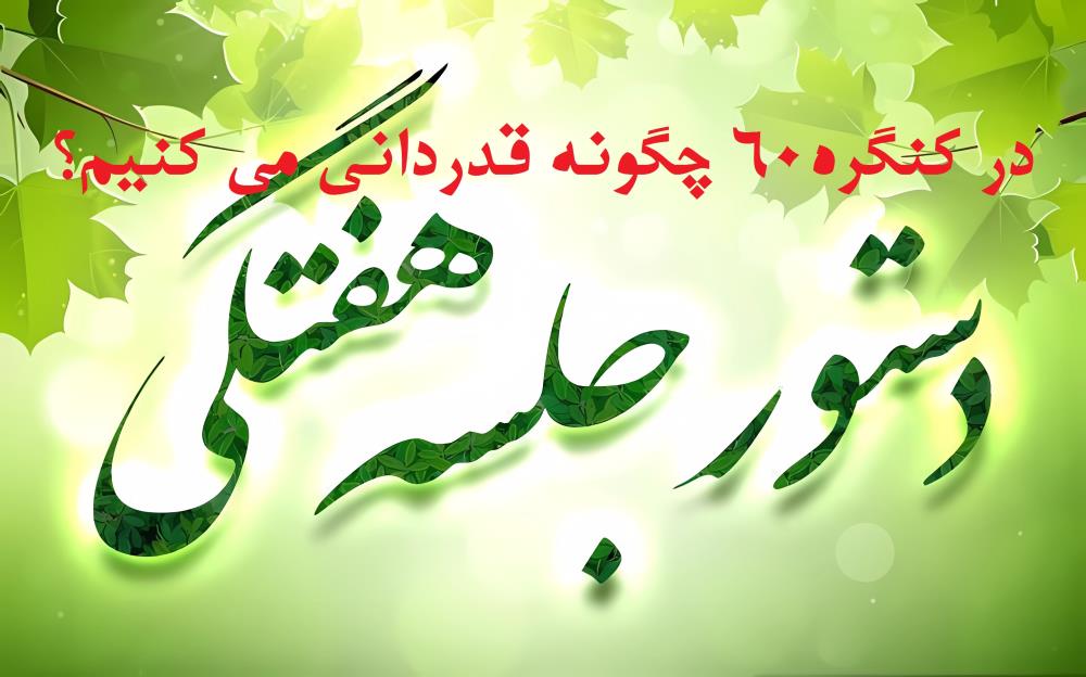 دستور جلسات هفتگي در کنگره60 چگونه قدردانی می کنیم؟ 22 آذر با آموزشهای کاربردی و زندگیساز که در کنگره 60 فرا میگیریم، تازه متوجه میشویم که کجای راه هستیم و باید به دنبال چه باشیم.