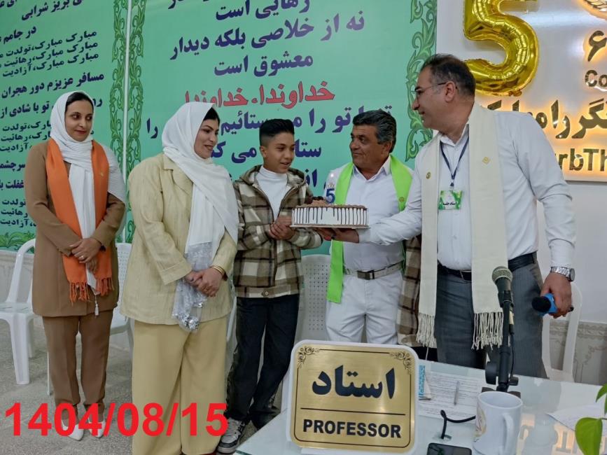 جشن تولد پنج سال رهایی مسافر مهدی رهجوی راهنمای محترم مسافر محمد را در نمایندگی سنایی نیشابور جشن می گیریم