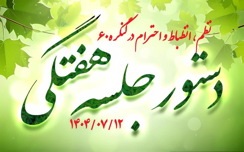 دستور جلسات هفتگي نظم، انضباط و احترام در کنگره60 12 مهر احترام، بنیادیترین اصل در ارتباطات انسانی است.