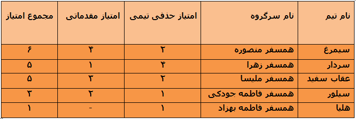با توجه به اینکه تیم سردار و تیم عقاب در امتیاز 5 برابر شدند، نتیجه تیم دوم و سوم این مسابقات با برگزاری یک مسابقه حذفی بین این دو تیم تعیین گردید که درنهایت تیم سردار با برد تیم عقاب به رده دوم این دور از مسابقات دستیافت.