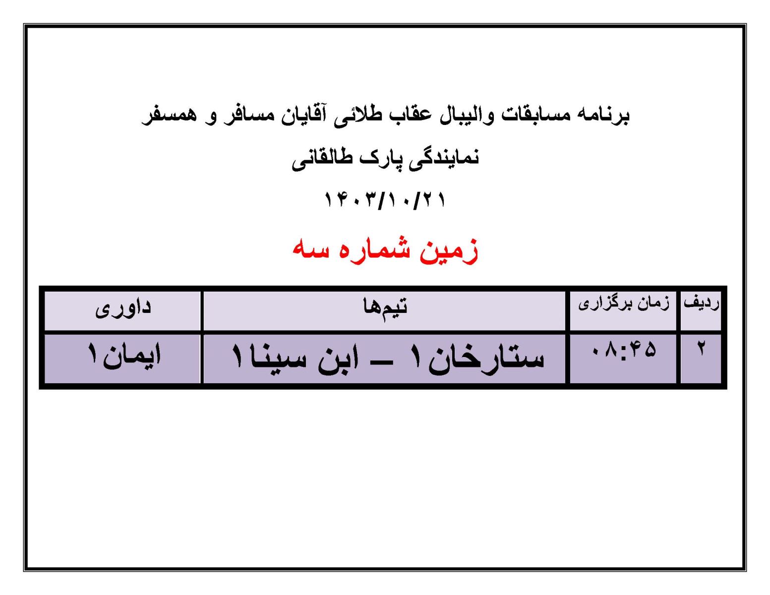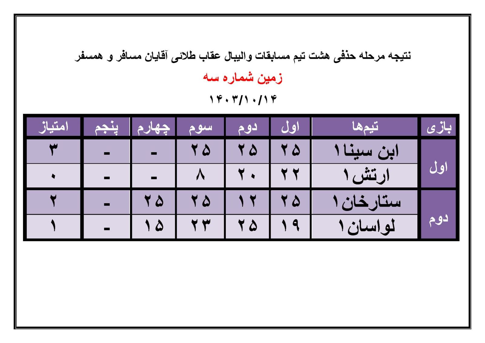 نتایج و برنامه مسابقات والیبال آقایان مسافر و همسفر نمایندگی پارک طالقانی