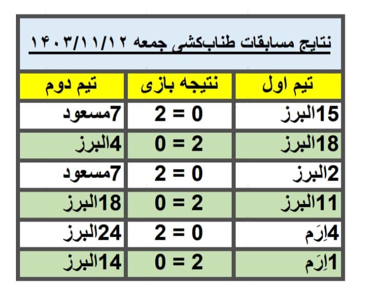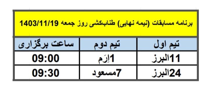 نتایج و برنامه مسابقات طنابکشی جام عقاب طلایی:
