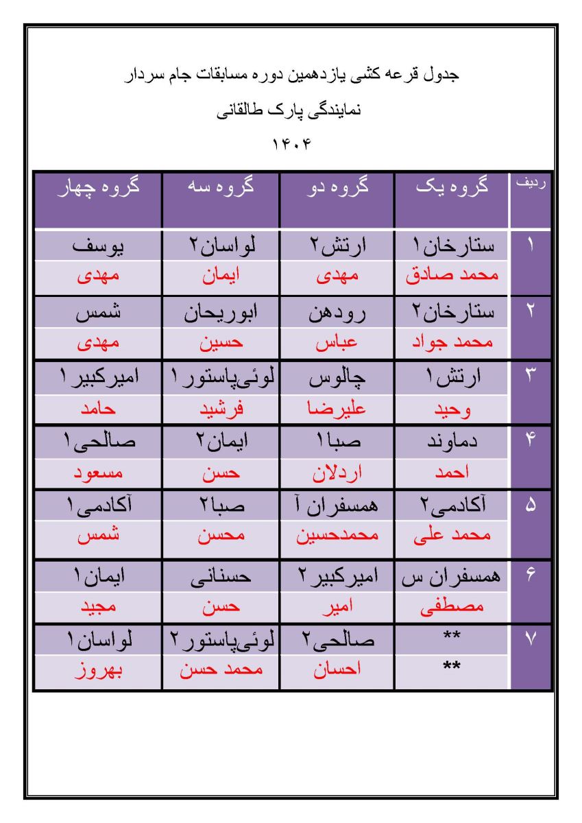 تربیت بدنی برنامه مسابقات والیبال جام سردار آقایان همسفر و مسافر نمایندگی پارک طالقانی منبع: پارک طالقانی(تهران) جمعه 22 فروردين 1404 تعداد بازدید از این مطلب : 1564 برنامه مسابقات منبع: پارک طالقانی(تهران) جمعه 22 فروردين 1404 تعداد بازدید از این مطلب : 1564 ویژه ها هشدار نایدا: وقفه در بروزرسانی و ارائه برخی از خدمات به دلیل وقفه در تأمین بودجۀ دولتی امریکا پذیرش مقاله مهندس حسین دژاکام برای ارائه در کنفرانس "مراقبت از اعصاب"،شیکاگو، امریکا (2026) گامی سرنوشتساز از سوی مهندس حسین دژاکام در درمان کووید-۱۹ و سارس مقاله "تأثیرات رفتاری و مولکولی پروتکل دی اس تی بر مدل حیوانی اعتیاد به تریاک" از مهندس حسین دژاکام، درصدر محافل علمی دنیا مورد بررسی و پذیرش قرار گر ارائه مقاله جدید و برجسته مهندس حسین دژاکام در حوزه درمان اعتیاد با روش DST با دقت سلولی مولکولی در کنفرانس بین المللی درمان اعتیاد در اورلاندو، فلوری دستاورد شگفتآور دیگری از تیم تحقیقاتی کنگره 60 در ریسرچ گیت منتشر گردید. دستاورد شگفت آور دیگری از کنگره 60، انتشار مقاله مهار متاستاز سرطان سینه به صورت short communication رویکردی نوین در درمان سرطان