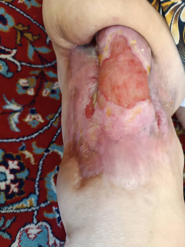 زخم مربوط به پای راست از زانو تا کشاله ران