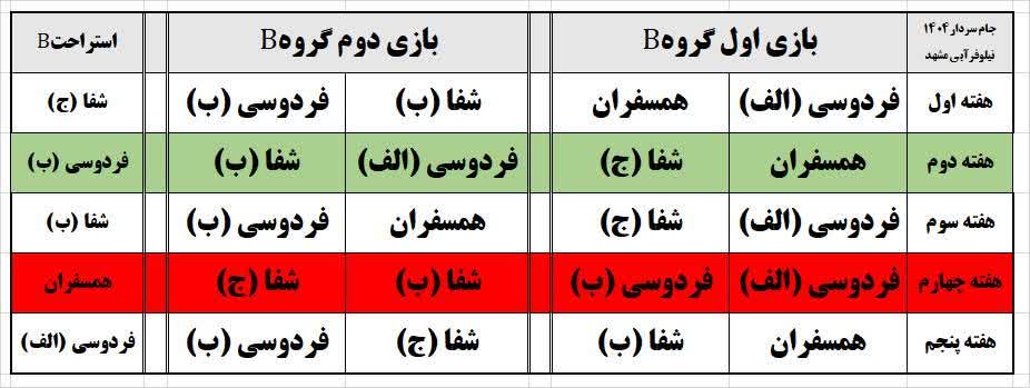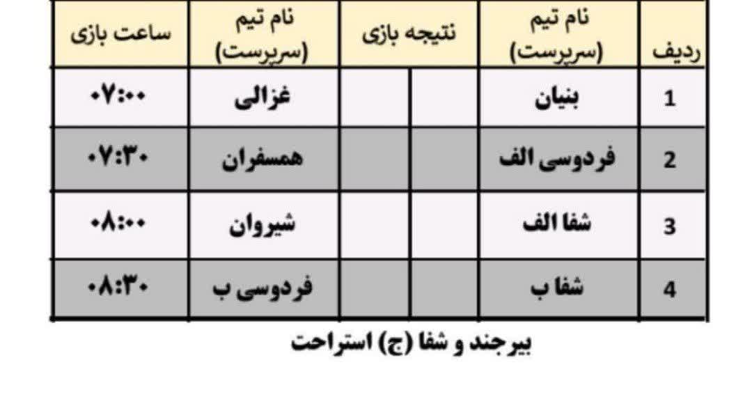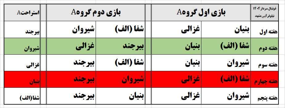روز جمعه 5 اردیبهشت ۱۴۰۴ مسابقات فوتبال جام سردار ۱۴۰۴ پارک نیلوفر آبی مشهد با انجام ۴ بازی از هفته اول آغاز میگردد.