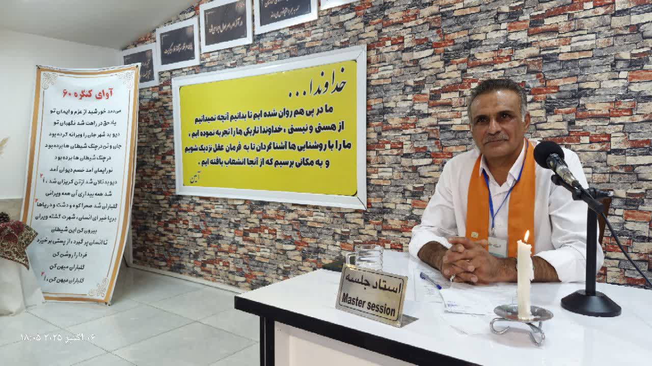 خیلی خوشحال هستم که در جمع شما هستم و اینجا هستم تا آموزش بگیرم از نگهبان تشکر میکنم امروز این جایگاه را در اختیار من گذاشتند تا بتوانم از شما آموزش بگیرم اصولا دستور جلسات در کنگره 60 به دو بخش تقسیم میشود یکی روی صور پنهان من کار میکنند و دوم جهانبینی، جهانبینی کاربردی که اگر آن ها را نتوانم در زندگی به اجرا دربیارم نمیتوانم تاثیر آن را در زندگی خود متوجه بشوم،دستور جلسه امروز هست نظم انضباط و احترام برای اینکه بتوانم در این مورد صحبت کنم بهتره از چند اگویی که در اطرافمون هست تا مسئله برایمان بیشتر روشن بشود در جهان هستی هر چیزی که در اطرافمون وجود داره دارای نظم و انضباط است شب به دنبال روز در حال حرکت است فصل ها به زیباترین شکل ممکن با زیباترین رنگ ها خودشان را به جهان هستی نشان میدهند و باعث شادی و نشاط به تمام هستی می شوند و اگر به هر دلیلی خللی به نظم بوجود بیاید باعث نابودی نظام هستی می شود و هر چیزی درون وجود دارد از بین خواهد رفت.