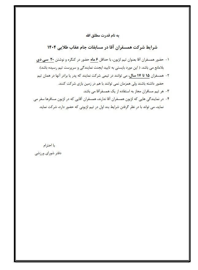 د. فرم قوانین جهت شرکت همسفران آقا: