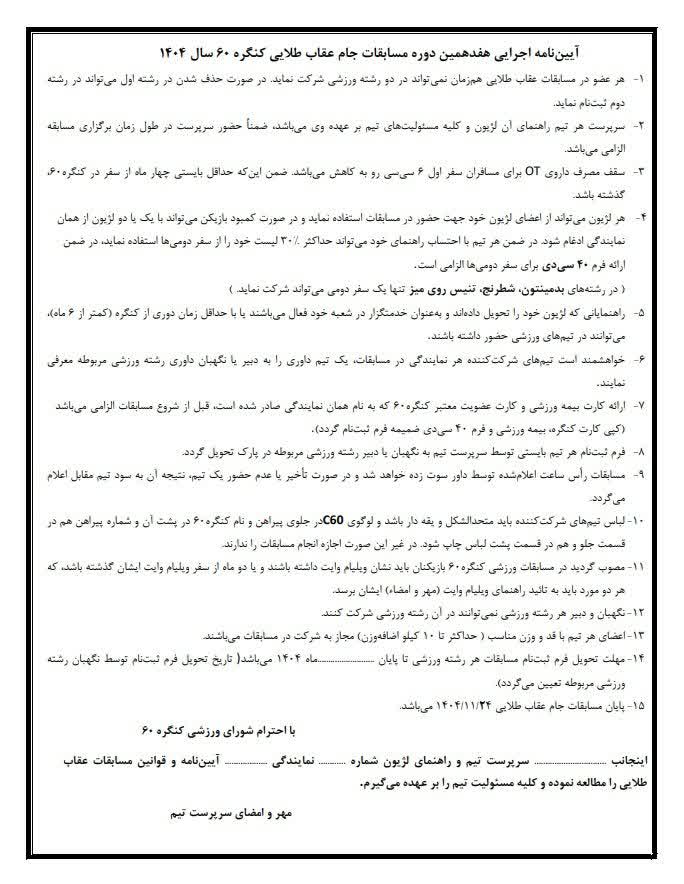 ج. فرم قوانین مسابقات که باید به امضای سرپرست تیمها برسد: