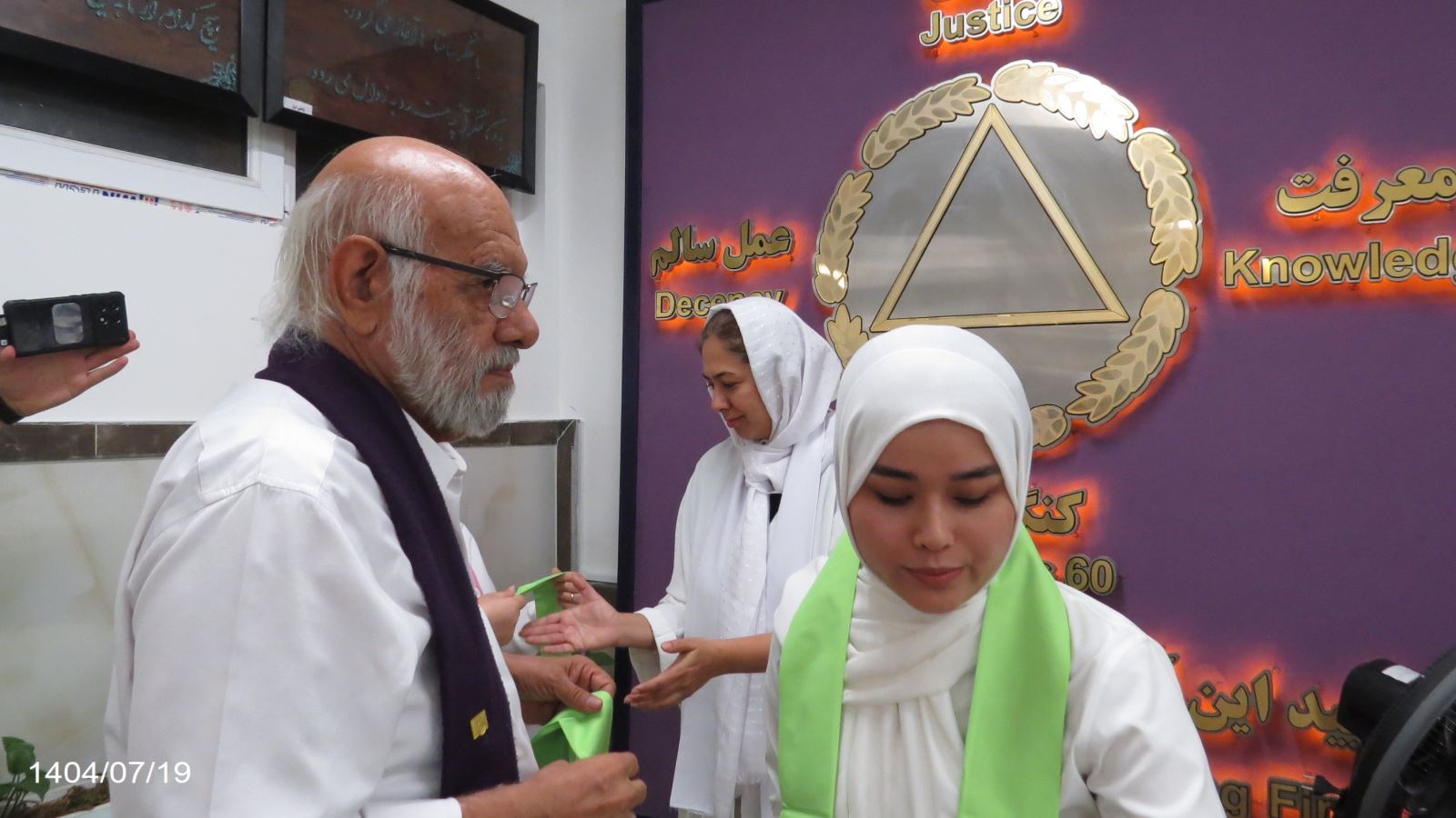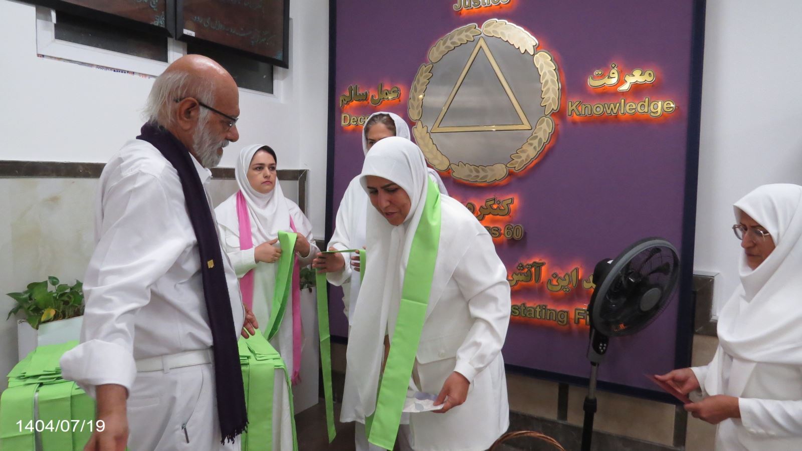 همچنین با حضور دیده بان خانم های مسافر ، 5 نفر از گروه خانم های مسافر از نمایندگیهای رز ، ارغوان ، لاله ، یاس و نسترن موفق به دریافت شال راهنمای تازه واردین شدند.