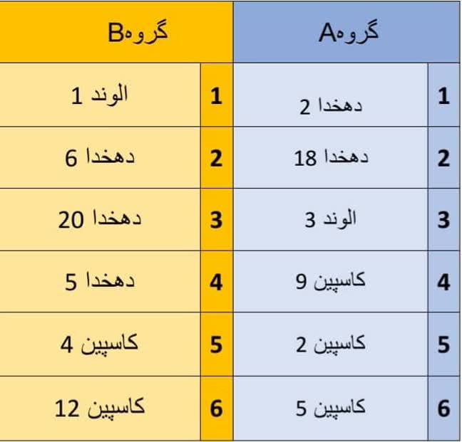 در نهایت گروهبندی تیمها به شرح زیر انجام شد
