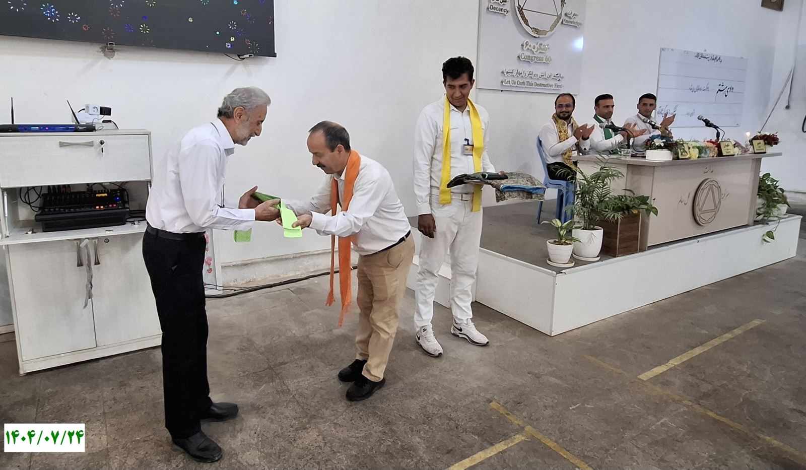 اهدای شال راهنمای تازه واردین به همسفر خسرو: