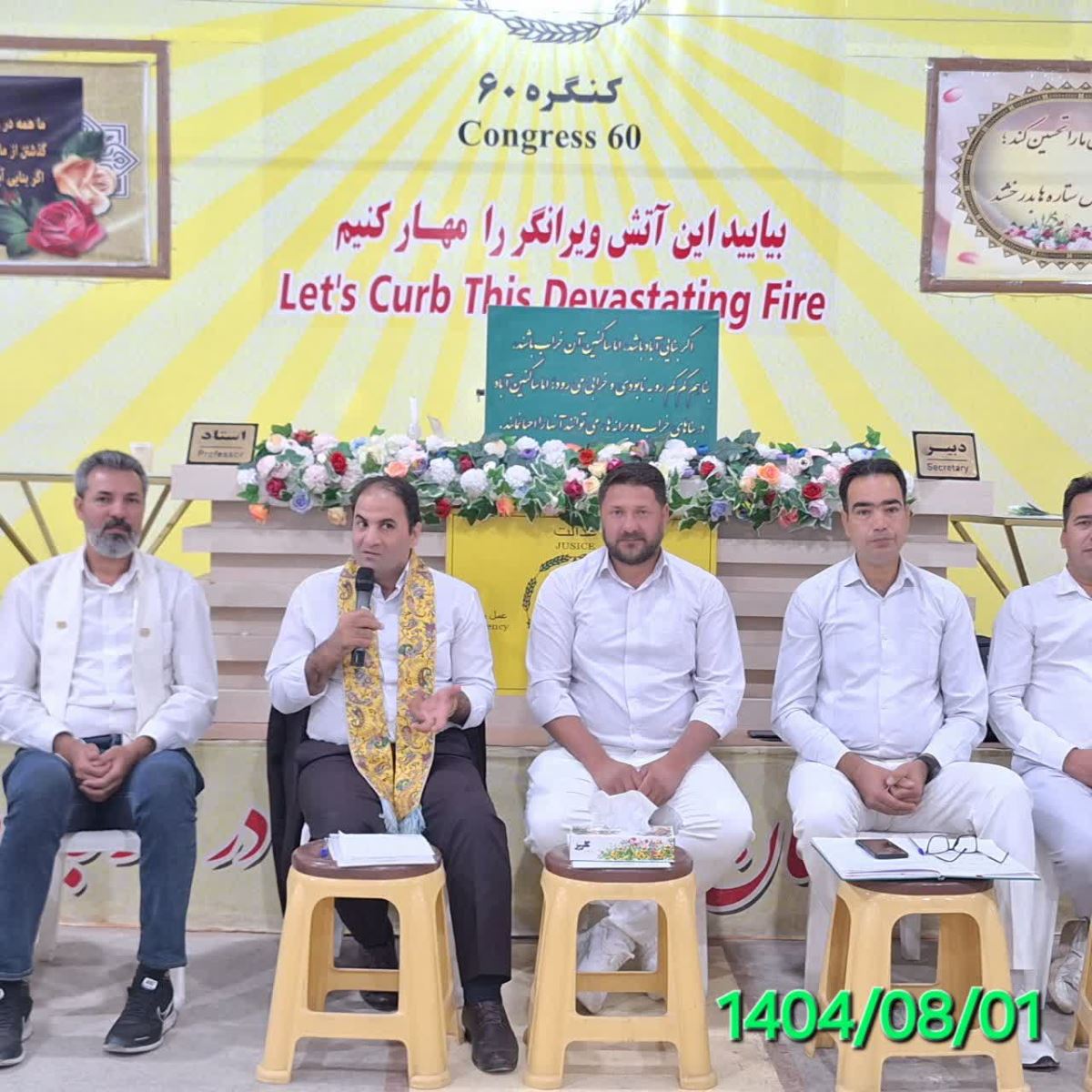 خیلی ممنونم از خداوند که روزی من شد در جمع شما عزیزان یاران عشق حضور داشته باشم و آموزش بگیرم. دستور جلسه امروز جهانبینی در ورزش است. اگه دقت کنیم دستور جلسات کنگره با یک ترتیب خاص و هدفمند چیده شدهاند. یعنی وادی هشتم، جهانبینی در ورزش و اوتی همه با هم ارتباط دارند. اینطور نیست که بیهدف کنار هم قرار گرفته باشند. در واقع وادی هشتم به جهانبینی، جهانبینی به ورزش و جهانبینی در ورزش به اوتی و در نهایت به لژیون سردار مربوط میشود. همهی اینها زنجیروار به هم متصل هستند و تأثیری درونی روی من باید بگذارند، یعنی تغییر و تبدیل باید در من اتفاق بیفتد. در هر دستور جلسه باید تغییری در من به وجود بیاید، مثل یک جرقه، و در پایان سال نتیجهی این جرقهها تبدیل میشود به یک دگرگونی واقعی. همانطور که گفته میشود پایان هر نقطه سرآغاز خط دیگری است، پس دستور جلسات تکرار میشوند تا تغییرات و تبدیلات در ما اتفاق بیفتد. من از وادی هشتم شروع میکنم، هر وادی پیامی دارد. وادی هشتم میگوید: امواج چون گردباد بر زمین فرود میآیند و آنچه برداشتنی باشد با خود به امانت میبرند. این یعنی بناست روزی آن امانتها را پس بدهند. امواج چه چیز را با خود میبرند تفکرات، گفتار، کردار و اعمال من را. در هر لحظه این امواج در حال گرفتن و بازگرداندن آنها هستند. به گفته آقای مهندس عام از زمین به آسمان و از آسمان به زمین در حال جریان است، یعنی آگاهی همواره در حرکت است. این حرکت برای بهوجود آمدن آگاهی و رشد انسان است. انسان مانند آدم و حوا در ابتدا در لامکان بود، اما با نقض فرمان خداوند به آنها گفت به پایین بروید. آنها عذرخواهی کردند و خداوند فرمود با عملتان پشیمانی خود را نشان دهید نه فقط با زبان. پس مهم این است که من چه فکری میکنم، چه چیزی در ذهنم میگذرد، در گفتارم چیست و در عملم چه نشان میدهم. یه مقدار از مالت رو ببخش، شاید ملموس باشه. اونوقت شاید بشینی فکر بکنی که چرا باید ببخشیم چرا این «چرا» را اگه بتوانم جواب بدم، و اگر بتوانم جواب بدم که «چی» را باید ببخشم، آن وقته که راه برام باز می شود. آن وقته که میتوانم حرکت بکنم. لژیون سردار، لژیون بسیار قشنگی هست؛ لژیون آقای مهندس هست. دیگه وقتی که آقای مهندس بیان بگن من لژیون دارم، ببینیم امروز چند نفر حاضرند توی لژیونش شرکت بکنند و چون ما در لژیون آقای مهندس شرکت نکردیم، برامون ملموس نیست، برای همین علاقهای هم برای شرکت کردن در اون نشون نمیدیم. ولی ارتقاء دارد، بخشش ارتقاء دارد. اصلاً صحبت، صحبتِ پول نیست، صحبت یه چیز دیگهست؛ چیزی که ورای ماده است. اون باید حس بشه، باید لمسش کنیم. یکی از بچهها داشت توضیح میداد، میگفت ما یه باغ انگور داریم. میگفت پدرهای ما فنس و دیوار نداشتند. هیچ فقیری و نداری برای میوه پول نمیداد؛ همینطوری میرفتند میچیدند، حتی شغالی هم میرفت میخورد. میگفت هر درخت انگور چهار جعبه انگور به ما میداد. میگفت اون پدرها که رفتند، بچههاشون اومدن فنس کشیدن، فنسهاشون رو هم چنان محکم فرو کردن توی زمین که هیچ حیوانی هم نمیتونه رد بشه. با این همه کود شیمیایی و مهندس و حساب و کتاب، قسم میخورد که الان هر درخت فقط دو تا یا سه تا جعبه انگور میده. یعنی قبلاً پنج تا میداده: یکی مال اونایی که نیازمند بودن و حیوانها، چهارتا هم مال خودشون. اما الان با این فنسها سهتا رو به زور میده. این صفت بخشندگیه که میخواد به من یاد بده چی رو باید یاد بگیرم. اینکه بخشی از مال دیگران در مال من است. یعنی چی یعنی من بدهکارم. وظیفه دارم. واقعاً اینطوریه یا نه آیا من بخشندهام آقای زرکش میگه: خمس و زکات میدی از اون مقداری که تهش میمونه، بدی، اون موقعی بخشندهای. ولی اینها که هیچی؛ باید بره. دختر آقای مهندس میگه: ده تا درمیاری، نهتاشو بده بره. آقای مهندس اینطوری هستن؛ ولی ما نهتاشو برمیداریم، یهدونشو میدیم، اونم با منّت، بعد هم به خودمون میگیم بخشندهایم اما اگر بدونیم صفت بخشندگی چه گنج عظیمی درونش داره، تازه میفهمیم چی ازش درمیاد. باید ببینیم ا