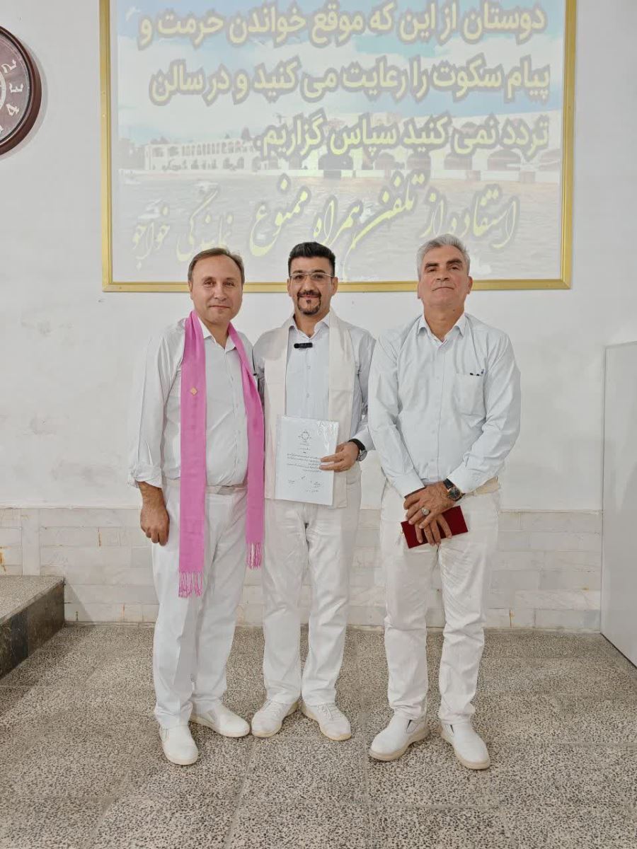 علی عزیز، صمیمانه به تو نیز تبریک میگویم. اکنون فرصتی برای شما فراهم شده است. آقای سلامی، دیدهبان محترم نیز تبریک خود را اعلام کردند. جناب آقای مهندس و اعضای کنگره دیدهبانان با تدبیر و صلاحدید خود تصمیم گرفتند که این جایگاه خدمتی را به تو بسپارند؛ جایگاهی که امیدوارم در آن با کمک و همراهی شما عزیزان، مسیر رشد و خودشناسی را به خوبی طی کنید.