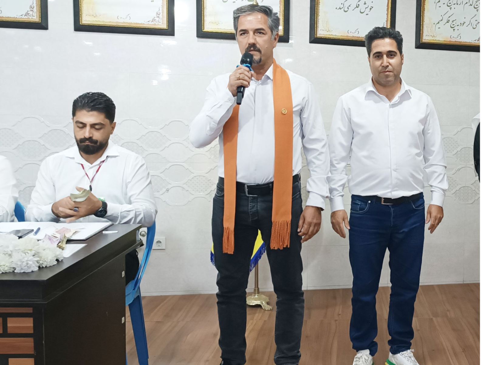 سلام دوستان امیر حسین هستم یک مسافر، خدا را شکر میگویم که امروز در این مکان در خدمت دوستان با محبتم قرار گرفتهام. از آقای مهندس، اساتیدشان و خانواده محترم ایشان صمیمانه تشکر میکنم. از نگهبان جلسه، دبیر عزیز، پهلوان عیسی، ایجنت محترم آقا اقبال و همه عزیزان خدمتگزار کمال تشکر را دارم.