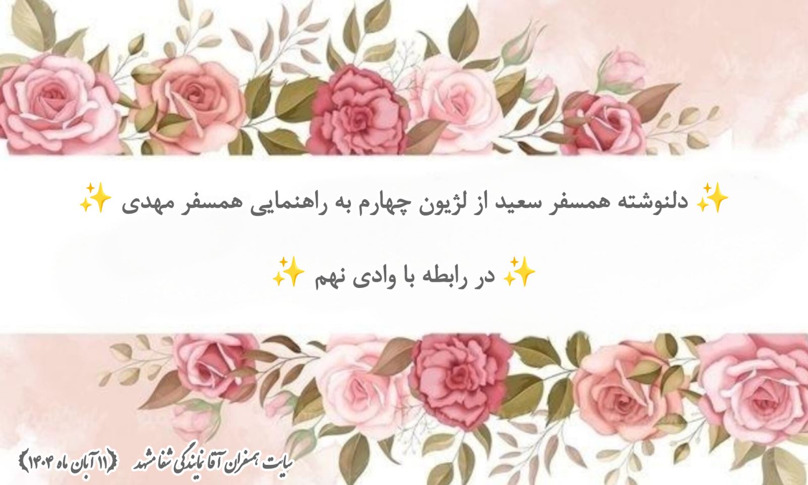 دلنوشته همسفر سعید از لژیون چهارم به راهنمایی همسفر مهدی در رابطه با دستور جلسه «وادی نهم: وقتی نیرویی از کم شروع بشود و به درجهی بالا و بالاتری برسد، نقطه تحمل پیدا میشود.»