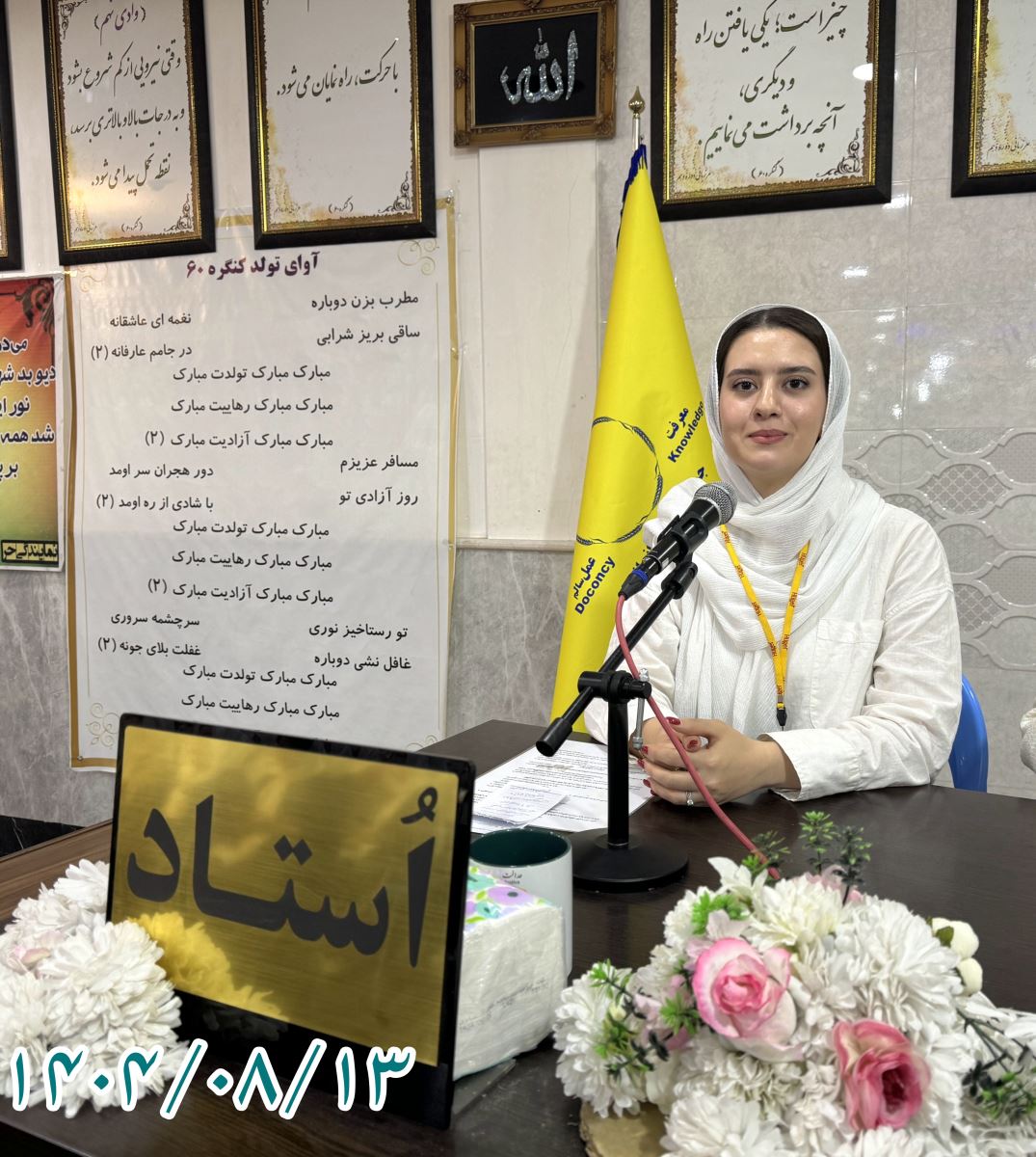 از خداوند سپاسگزارم که یکبار دیگر توفیق خدمت در این جایگاه به من داده شد تا بتوانم آموزش بگیرم. از مهندس دژاکام تشکر میکنم که این مکان مقدس را به وجود آورد تا من معصومه بتوانم آموزش بگیرم و به حال خوش برسم. از راهنمایان خوبم راهنما همسفر سمیرا نظری و راهنما همسفر مریم ملکی بینهایت سپاسگزارم و میخواهم بگویم که قدردان زحماتشان هستم و اما دستور جلسه امروز که وادی نهم است. وادی نهم درباره نقطه تحمل صحبت میکند و میگوید: «اگر نیرویی از کم شروع شود و به درجه بالا و بالاتری برسد نقطه تحمل پیدا میشود».