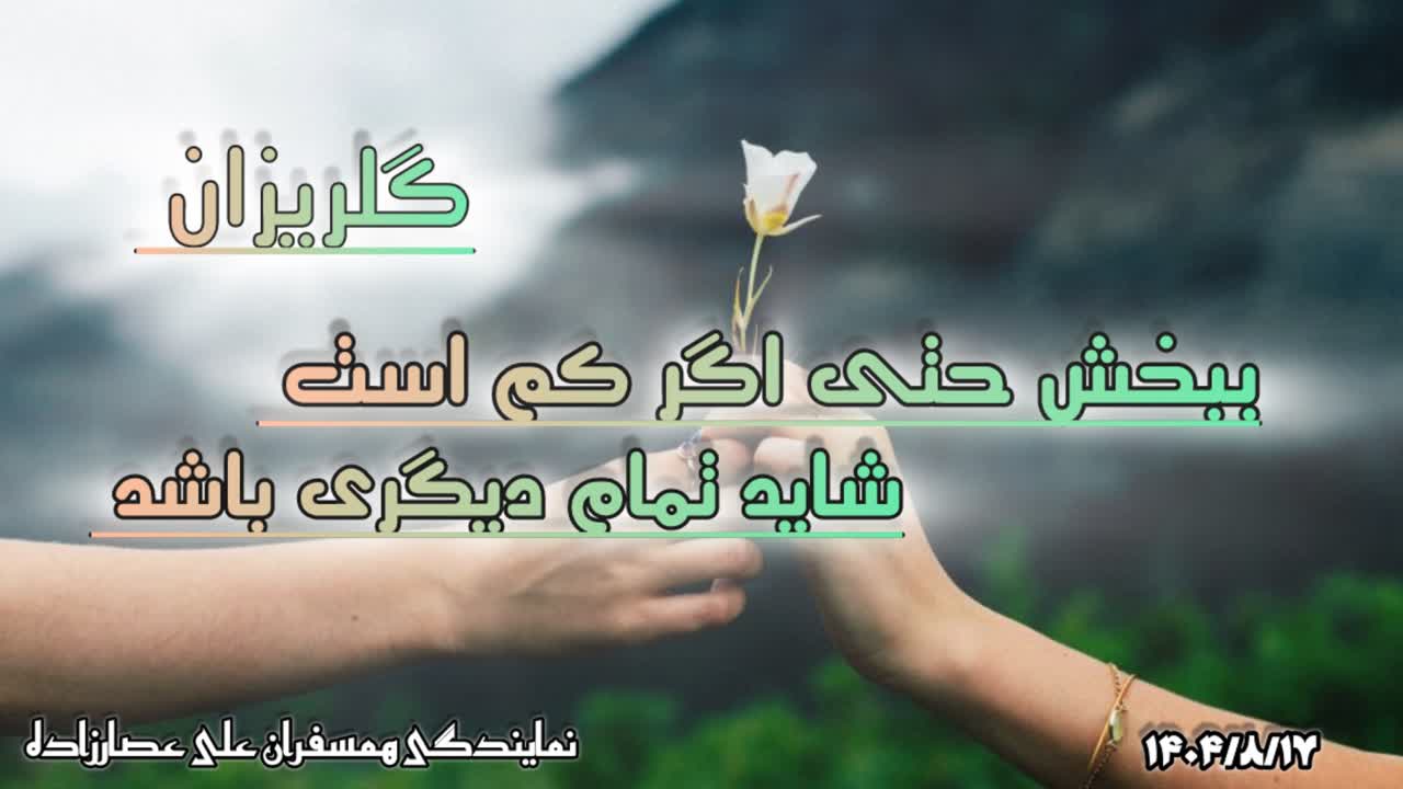 گلریزان فرصتی است برای تجلی نور خدا، برای عبد بودن و درست زندگی کردن و قرار است که با دستدهنده ما دست انسانهای نیازمند فشرده شود. کسی که میبخشد، مثل رودخانه زلال و پاک در جریان است، احیا میکند، میسازد و پیش میرود و یک لحظه از حرکت نمیایستد و این بخشندگی نشانه اهل ایمان است. خداوندا برای بودن در این حیات و شاگردی در این مسیر الهی شکر.