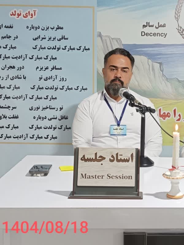 سلام دوستان مهدی هستم یک مسافر. منهم خدای خودم را شاکر و سپاسگزار هستم.که امروز توفیق داشتم در این جایگاه بنشینم و از همه دوستان آموزش بگیرم .از بنیان کنگره شصت مهندس دژاکام بزرگوار استاد امین عزیز واز تمامی خدمتگزاران در لژیون سردار در سراسر کشور تشکر و سپاسگزاری میکنم.وهمچنین از خدمتگزاران لژیون سردار شعبه کبودراهنگ قدردانی و تشکر میکنم. از راهنمای بزرگوارم آقا جلال کمال تشکر و قدردانی دارم که حال خوشی امروزم را مدیون ایشان هستم.