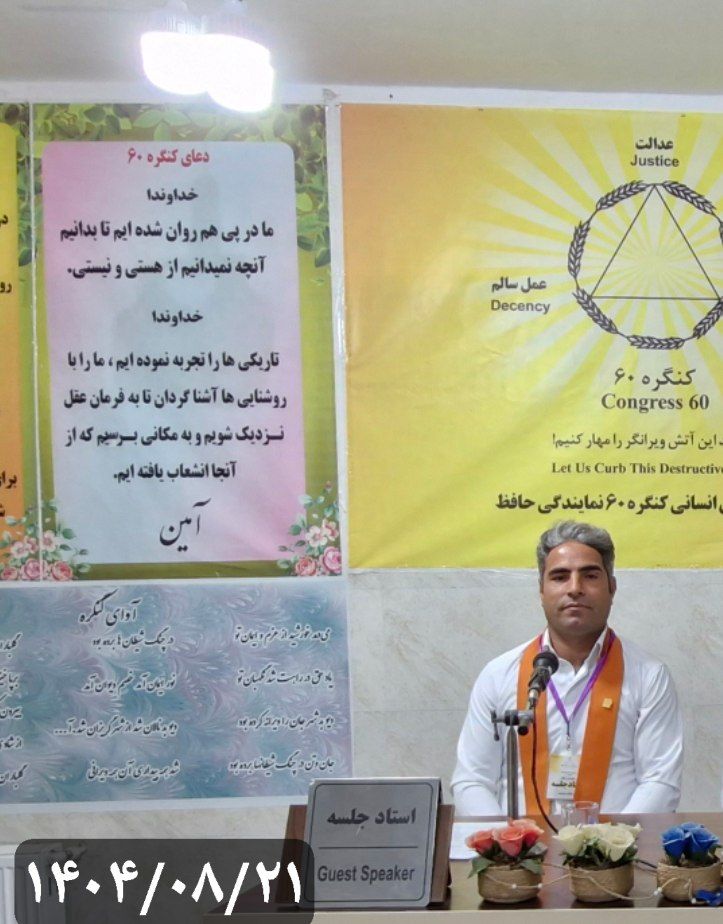 دیگران کاشتند و ما خوردیم و باید بکاریم تا دیگران بخورند. خداوند ضمانت نکرده است که فرزند بنده مصرفکننده نشود؛ تقدیرم این است هشتاد سال عمر کنم، حالا تو جاده فرمان را به سمت پرتگاه بچرخانم دیگر اینجا دست خداوند نیست. خداوند توفیق داده اینجا وقف و هدیه کنیم، نه کمک؛ یعنی کمکهای کنگره را در توان خودم ببخشم و جبران کنم شاید بیمهای باشد برای فرزندانم. باید از دستور جلسات استفاده کنیم؛ خیلیها را خداوند اجازه نمیدهد از این درب وارد شوند تا آگاهی و دانش کسب کنند. مادیات واجب است که اگر نباشد در تأمین معاش لنگ هستیم، اما اگر مادیات بر بنده سوار شود، نیروهای اهریمن مرا شکست خواهند داد. امیدوارم از این فرصت که برایمان ایجاد شده به نحو احسن استفاده کنیم.