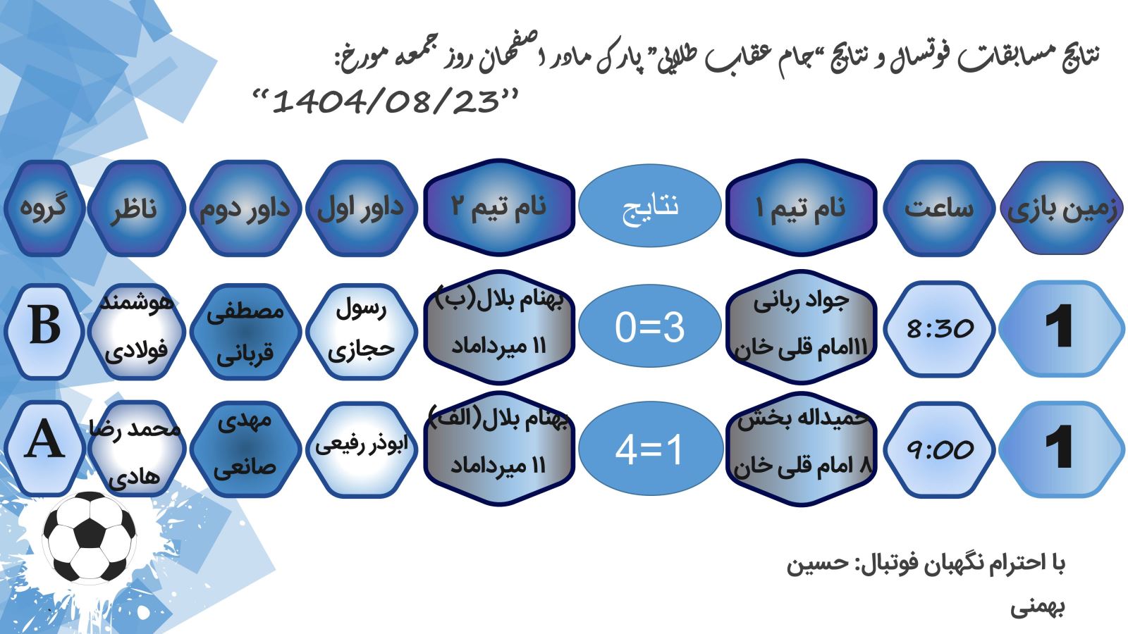 برنامه مسابقات فوتسال 30آبان ماه 1404
