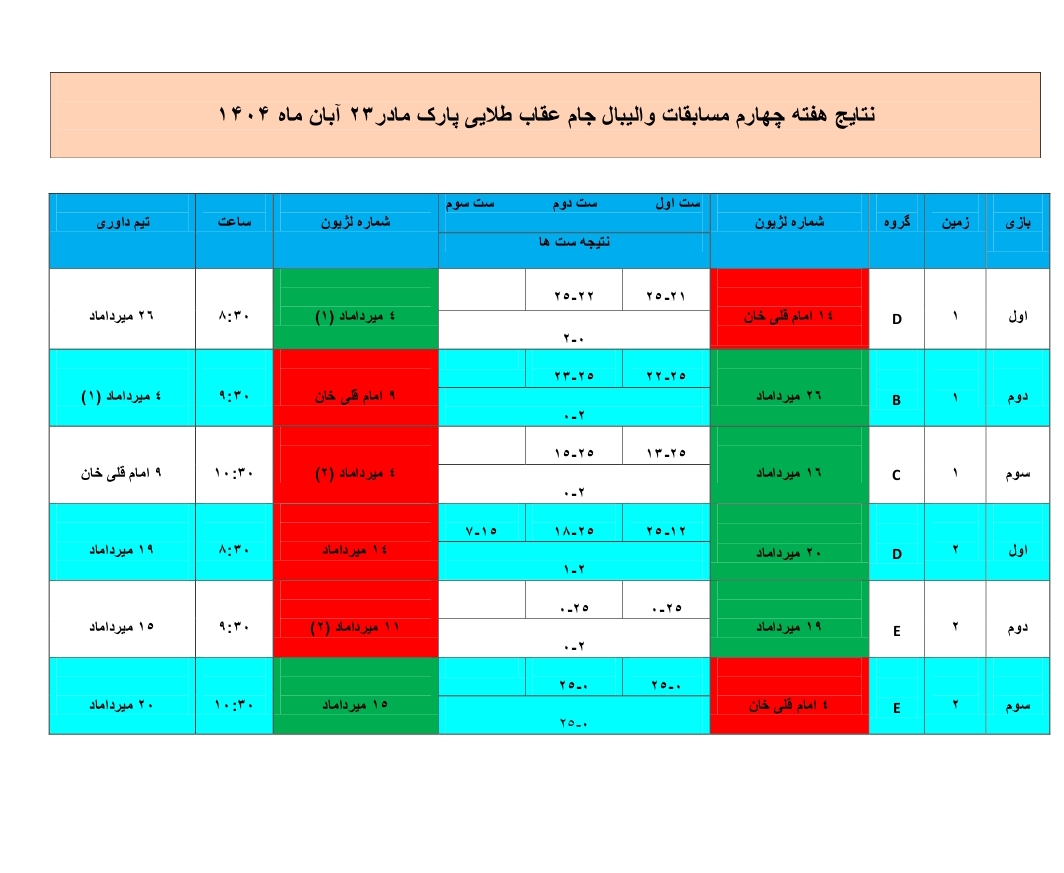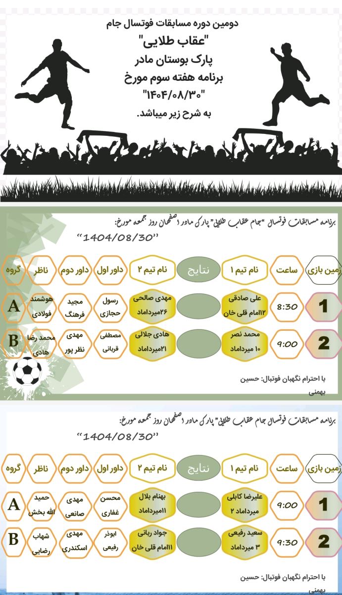 فعالیت های ورزشی و نتایج مسابقات جام عقاب طلایی بوستان مادر اصفهان مورخ 23آبان ماه 1404