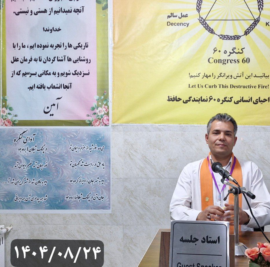 سلام دوستان سعید هستم یک مسافر،از گروه مرزبانی و ایجنت محترم تشکر میکنم که اداره جلسه رو به بنده واگذار کردند،در کنگره ۶۰ درمان اعتیاد بر پایهی مثلث «جسم، روان و جهانبینی» استوار است. جسم با پروتکل دقیق داروی OT و پلههای ۲۱روزه به تعادل میرسد و روان نیز بهموازات جسم درمان میشود، اما بخش مهمتر، یعنی جهانبینی، نیازمند آموزش، تمرین و تغییر نگاه است. جهانبینی با داروی شیمیایی اصلاح نمیشود؛ بلکه «دانش» میخواهد و این دانش از دل سیدیها، نوشتن، گوشکردن و عملکردن به آنها بهدست میآید. زندگیکردن یک هنر است و نیاز به سواد و مهارت دارد.