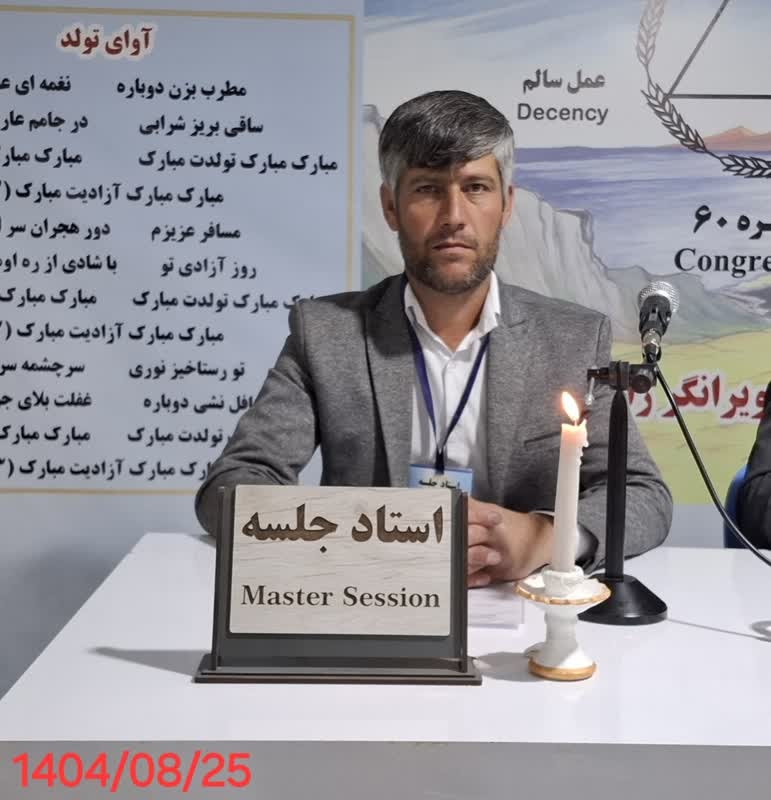 من هم خدا را شاکر هستم. که یکبار دیگر توفیق داد در این جایگاه باشم. و از دوستان آموزش بگیرم. از بنیان کنگره 60 آقای مهندس دژاکام سپاسگزارم، که بستر آموزش کنگره60 را فراهم کردند. تا من به رهایی و تعادل برسم.از راهنمای خوبم آقا جلال کمال تشکر را دارم. ث امیدوارم که برکات خدماتشون در زندگیشان جاری و ساری باشد.