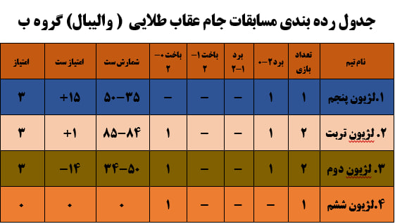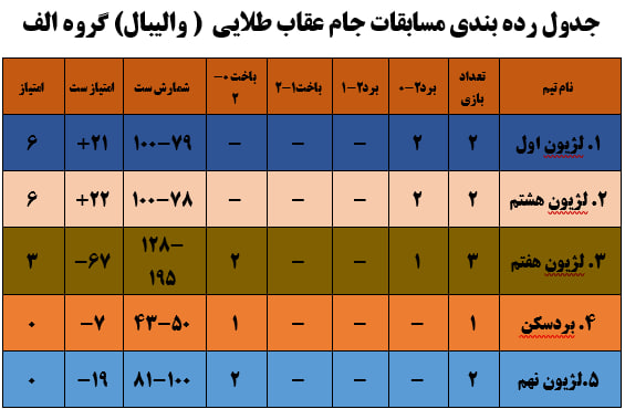 جدول رده بندی مسابقات جام عقاب طلایی نمایندگی کاشمر