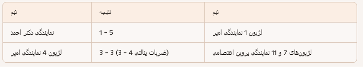 نتایج دور نیمه نهایی مسابقات فوتبال جام عقاب طلایی در نمایندگی پارک باهنر اراک - جمعه 30 آبان 1404