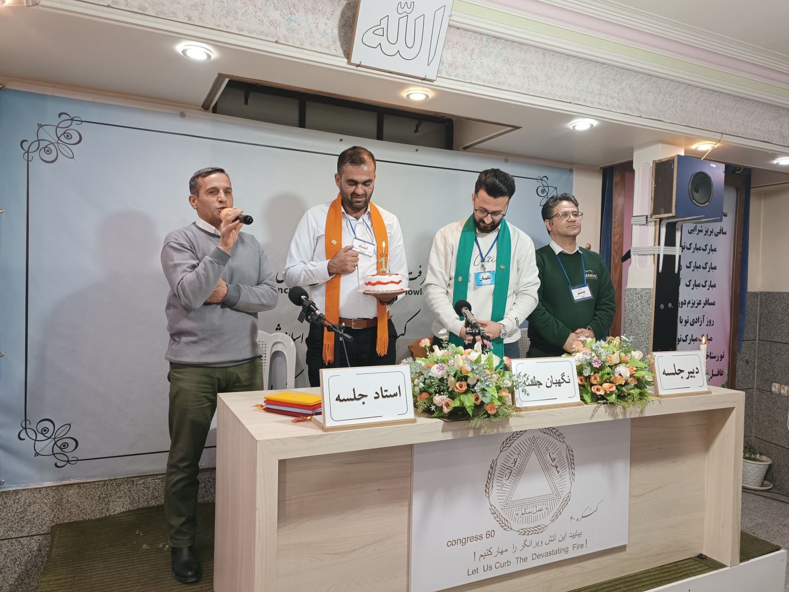 در قسمت دوم جلسه و در رابطه با تولد اولین سال رهایی مسافر علی عزیز باید بگویم او در واحد ot خدمتگزاری منضبط و متعهد میباشد و بسیار تابع و فرمانبردار است به همین دلیل تا این لحظه هیچ شکایتی از هیچکس در روند خدمت خود نداشته است و همیشه در راستای خدمت سالم حر کت میکند، من برای علی عزیز تصویر خوبی از خدمت در ذهن دارم و همیشه به دور گردن او شال میبینم، این تولد ارزشمند را به خانواده او، اعضای کنگره۶۰ و همه شما عزیزان تبریک میگویم.
