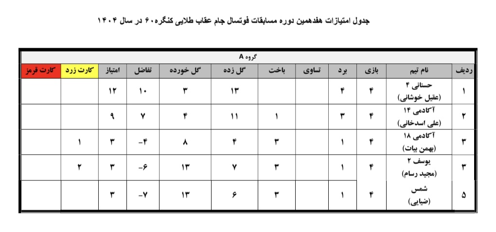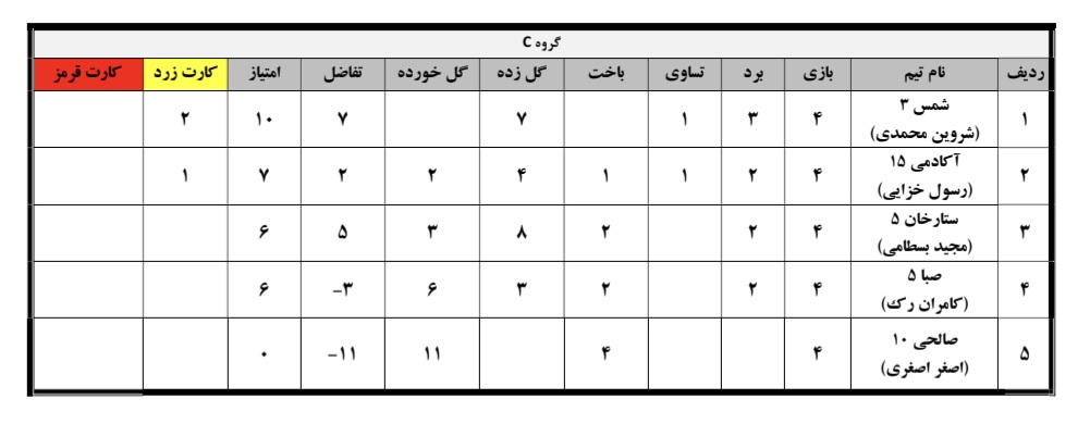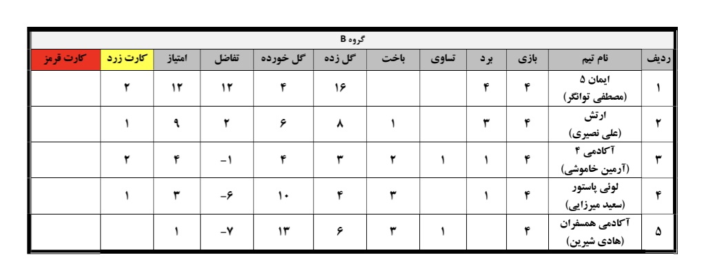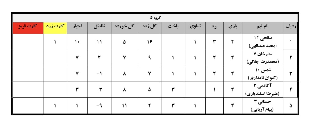 در ادامه جدول ردهبندی چهار گروه D , C , B , A را مشاهده میفرمائید.