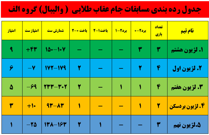 جدول رده بندی مسابقات بوستان بسیج نمایندگی کاشمر