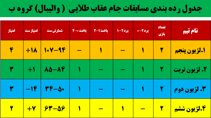 🏐 اعلام نتایج هفته ششم مسابقات والیبال جام عقاب طلایی