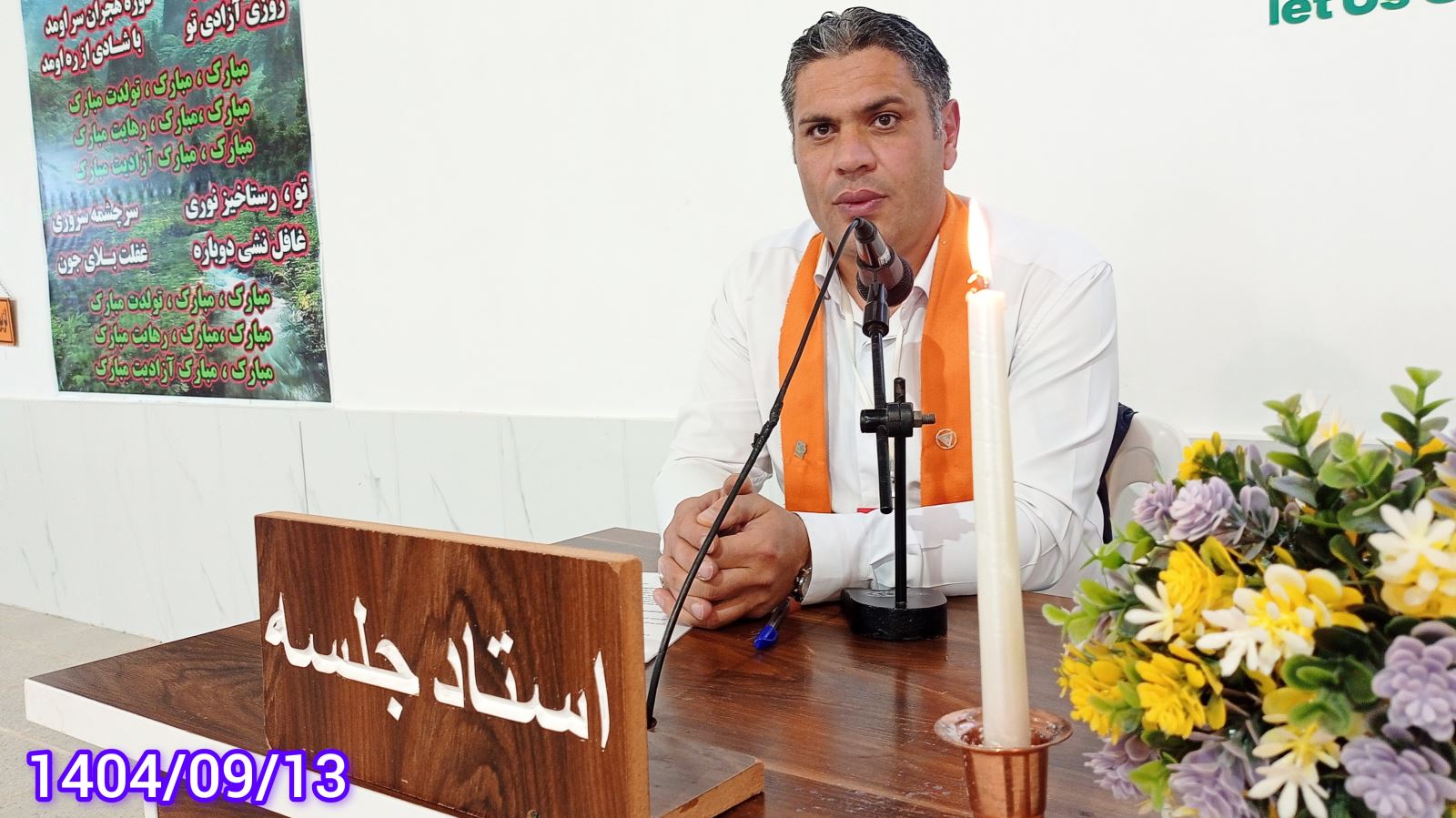 اما حضور من امروز در این جایگاه بخاطر پنجمین سال رهایی و جشن آزاد مردی راهنمای محترم مسافر نجمالدین است که بخشی از دستور جلسه امروز ما است. اما در مورد دستور جلسه هفتگی" وادی دهم و تاثیر آن بر روی من" که این وادی به من یادآوری میکند که صفت گذشته در انسان صادق نیست، چون جاری است. برخی از این صفتها در وجود ما قرار دارد که انتصابی ایست و انتخاب آن به اختیار من شکل نمیگیرد، به طور مثال آدم قد بلند یا قد کوتاه، آدم زشت یا زیبا که هیچ کدام به اختیار من شکل نمیگیرد و من نمیتوانم آنها را تغییر دهم ولی صفتهایی هم وجود دارد که کسب کردنی است و این یعنی به اختیار و انتخاب من شکل میگیرد، مثل صفت مصرفکننده، معتاد، بامحبت با خشن بودن که مسیر حرکت من آنها را برای من شکل میدهد و همه این به اختیار و انتخاب من بستگی دارد و این یک ویژگی برتری است که دیگر موجودات از آن برخوردار نیستند.