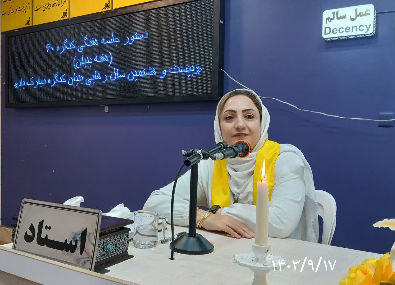 خدا را شاکرم سپاسگزارم که در کنگره حضور دارم از دبیر، نگهبان جلسه و ایجنت و مرزبان تشکر میکنم که به من اجازه دادند در این جایگاه باشم و آموزش بگیرم. من بیست و هشتمین سال رهایی آقای مهندس را در رأس به خودشان و خانواده محترمشان و خانواده بزرگ کنگره ۶۰ و مخصوصاً نمایندگی ساوه تبریک عرض میکنم. بنیان به معنی ریشه است و ریشه درخت بزرگ و تنومند کنگره ۶۰ آقای مهندس هستند و همه ما زیر سایه این درخت بزرگ و تنومند آموزش میگیریم و به حال خوش و آرامش رسیدیم.