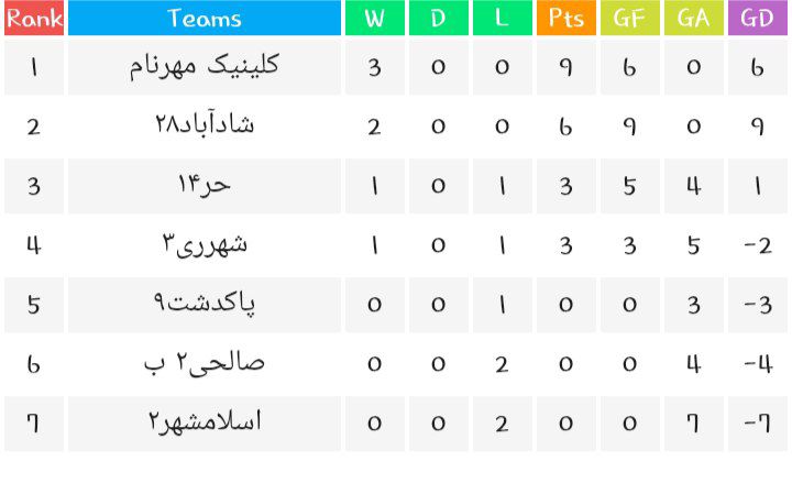 نتایج هفته سوم مسابقات فوتسال جام عقاب طلایی بوستان ولایت