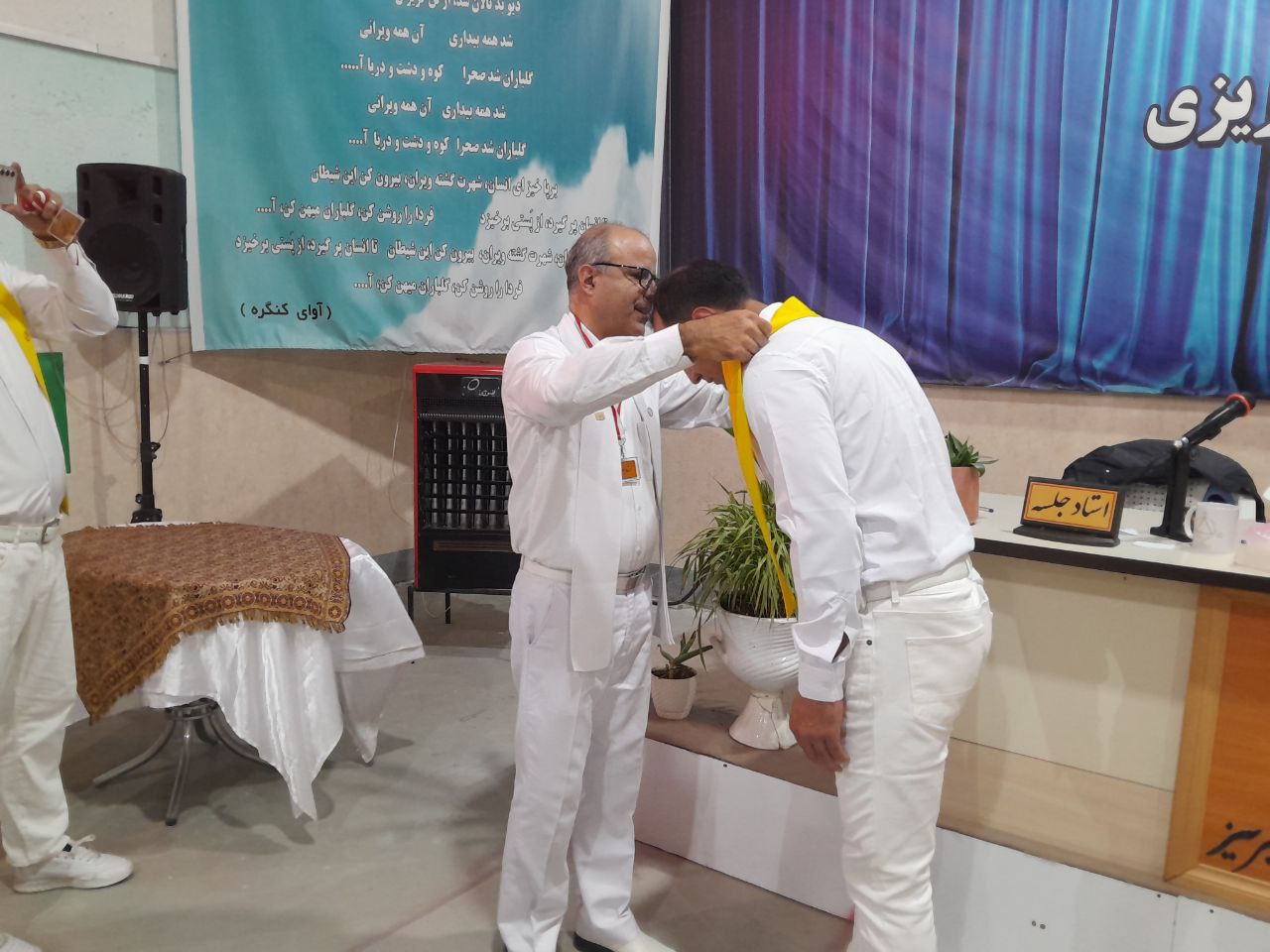 دستور جلسهی این هفته برای آن است که بدانیم ایشان در این سالها چه کارهای بزرگی انجام دادهاند. آقای مهندس با آموزشهای ناب، ریشههای ما را تغذیهی علمی کردهاند. کنگره ۶۰ از سرچشمهی عشق، محبت، علم و دانش که همان بنیان است، تغذیه میشود. کنگره ۶۰ در این ۲۶ سال تغییرات شگرفی داشته است و امروز به درختی تنومند تبدیل شده که سایهی آن بر سر هزاران انسان گسترده است همین شالی که امروز بر دوش راهنماها دیده میشود، در روزگاری که من وارد کنگره شدم وجود نداشت. آن زمان هر فردی که از بند اعتیاد رها میشد،