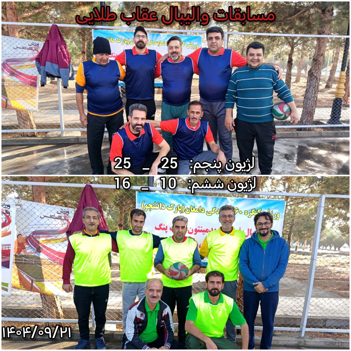 در راستای برگزاری مسابقات جام عقاب طلایی در رشته های مختلف، این هفته مسابقات والیبال با حضور پنج تیم، بین لژیونرها در پارک دانشجو (دامغان) برگزار گردید.