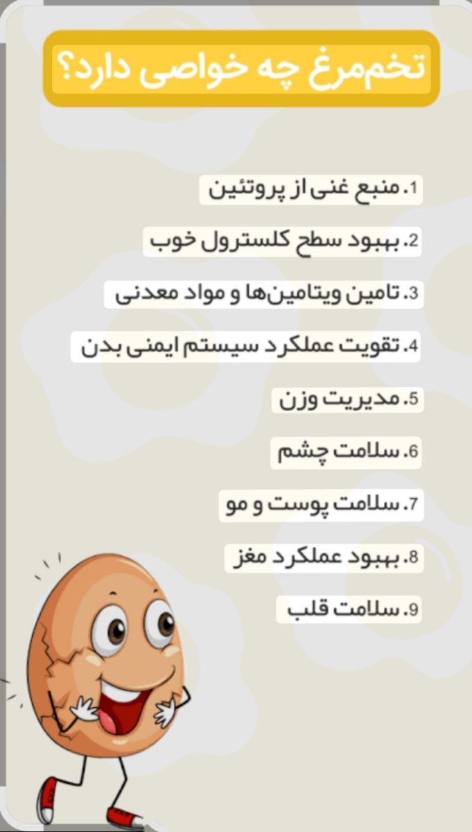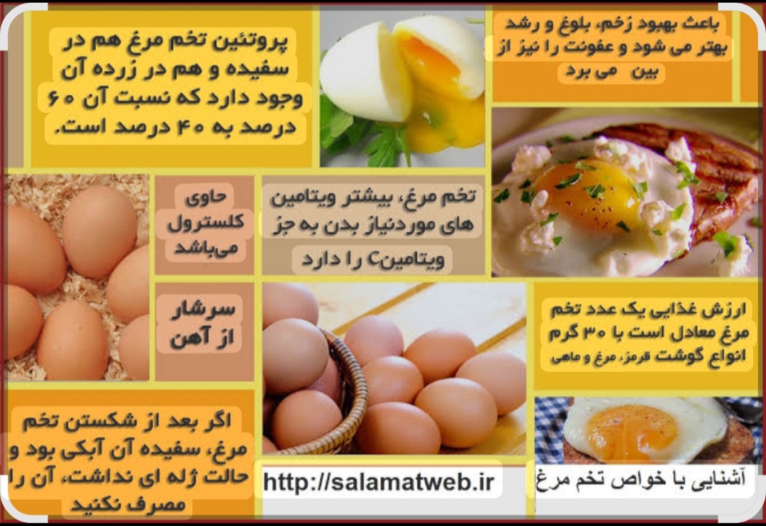تخم مرغ یکی از کاملترین منابع پروتئین می باشد، بدین معنی که تخم مرغ حاوی تمام آمینواسیدهایی است که باید از رژیم غذایی مان کسب کنیم.