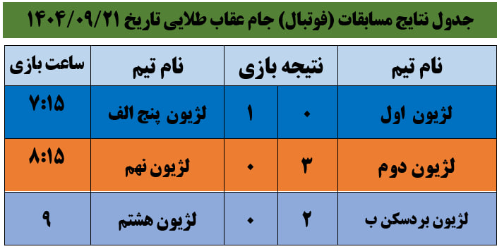 ⚽️ اعلام نتایج هفته هشتم مسابقات فوتبال جام عقاب طلایی