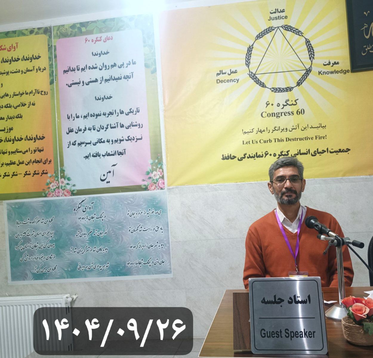 ششمین جلسه از دوره سیزدهم از سری کارگاههای آموزشی خصوصی کنگره ۶۰ ویژه مسافران نمایندگی حافظ شعبه شهریار با نگهبانی مسافر علی اصغر واستادی مسافر حمید و دبیری مسافر مصطفی با دستور جلسه «در کنگره60 چگونه قدردانی میکنیم؟» چهارشنبه26 آذر ۱۴۰۴ راس ساعت ۱۷ آغاز به کار نمود.