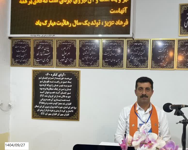 آقا فرهاد یکی از رهجویانی بود که در ابتدای سفرش با فرازونشیب های فراوانی روبرو شد؛ اما باور و اعتقاد او به کنگره روزبهروز قویتر شد. فرهادِ رهجویی بود که سیدیها را با دقت مینوشت و دفتر بزرگش پر از یادداشتهای دقیق بود. در پایان هر نوشته، با رسم یک قلب زیبا و ذکر تاریخ و ساعت، از آقای مهندس تشکر میکرد. همین انضباط و سپاسگزاری، باعث شد به سفر دوم راه یابد و اکنون در بخش صدور کارت بهعنوان یک خدمتگزار مشغول میباشد. برای او آرزوی موفقیت دارم و انشاءالله در مسیر، استاد و مربی موفقی شود و بتواند آموزشهای لازم را بهخوبی انتقال دهد..jpg)